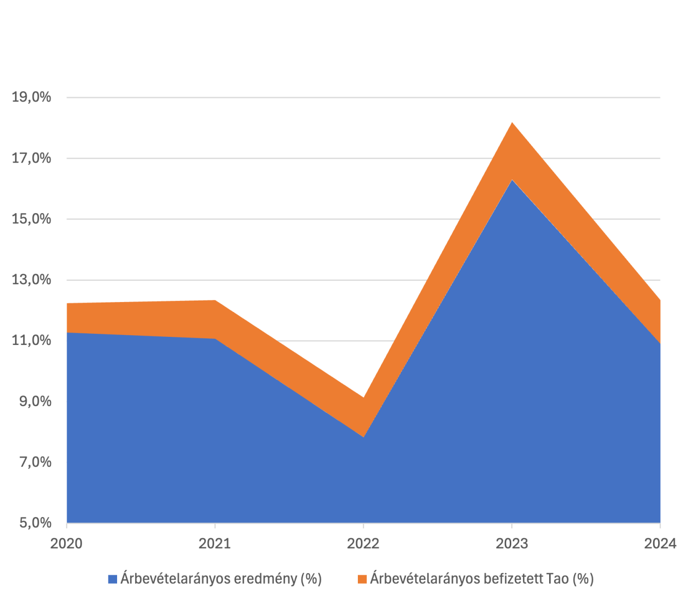 Az árbevételhez viszonyított arány ennek megfelelően 1,44%-ra esett vissza a korábbi 1,89%-ról. Ha hosszabb távon tekintünk a számokra, látszik, hogy a 2020-as 0,97%-hoz képest a szektor mára stabilan magasabb adóterhet visel, ami a piackutatás súlyának és gazdasági szerepének erősödését is jelzi. Ugyanakkor az idei csökkenés intő jel: a nyereségesség vékonyabb rétege miatt a költségfegyelem nemcsak a cégek működésében, hanem a közteherviselésben is egyre nagyobb szerepet kap.
