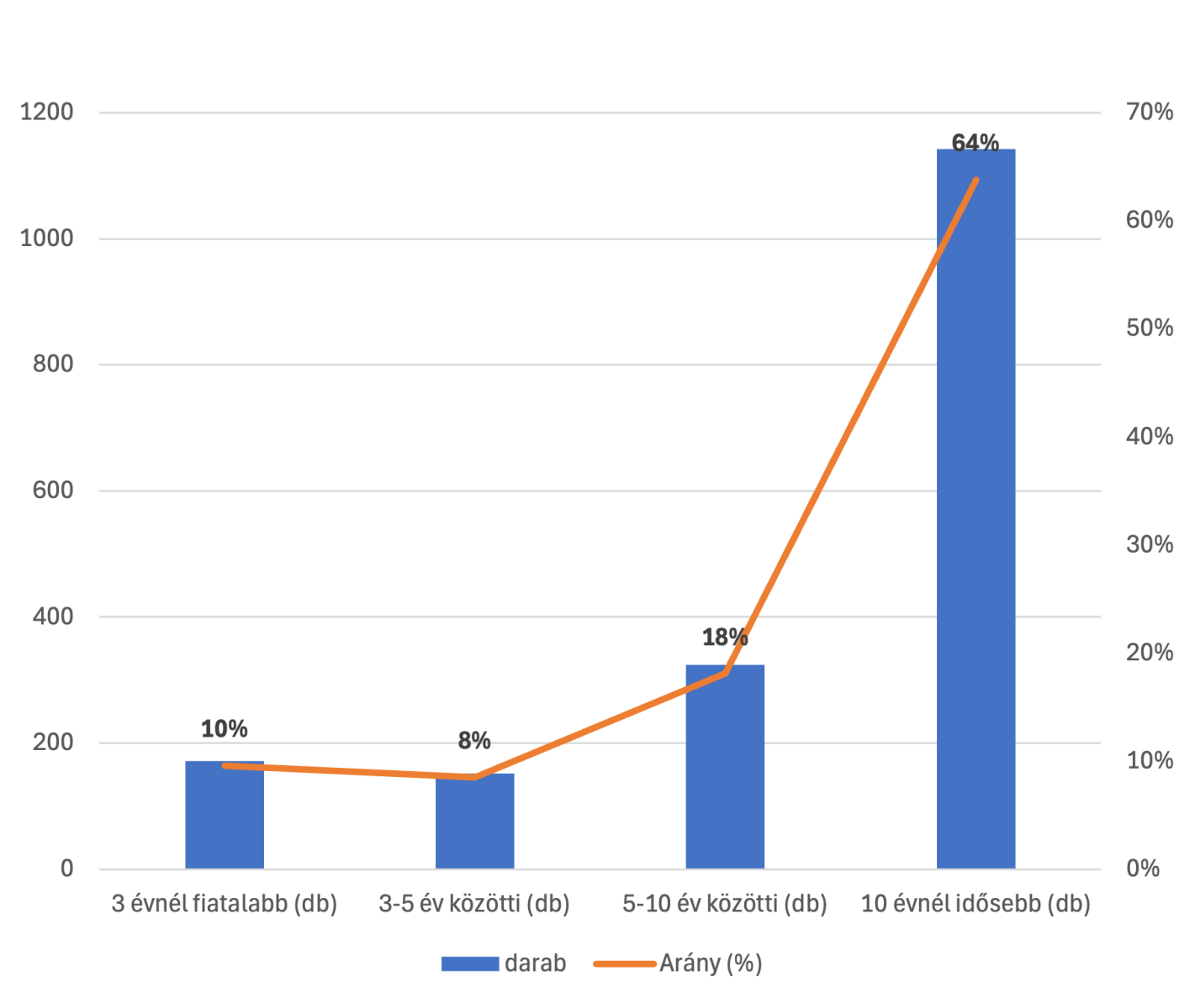 A tulajdonosi és vezetői kör inkább a tapasztalat oldaláról erős: a legrégebbi vezetők és tulajdonosok több évtizedes múlttal vannak jelen, miközben a legidősebb tulajdonos 90 éves, a legfiatalabb pedig mindössze 9. Bár a 30 év alatti vezetők aránya alacsony – 4–6% –, jelenlétük azt mutatja, hogy a fiatalabb generáció is belép a döntéshozatalba, még ha kisebb súllyal is.